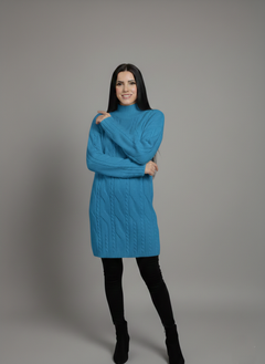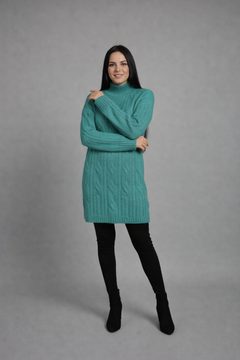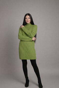 A cozy, throw-on sweater dress that nails off-duty chic. The cable knit texture, relaxed silhouette, and turtleneck neckline deliver effortless drape and all-day comfort.